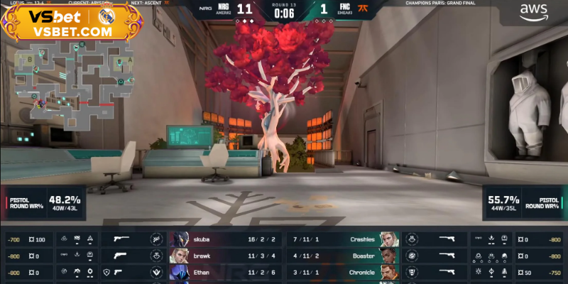 NRG tiếp tục ổn định, giành chiến thắng 13-6 trên Lotus. IGL Ethan đưa ra quyết định macro chuẩn xác, khai thác điểm yếu đối thủ bằng lối chơi thông minh. Chiến thắng này giúp NRG dẫn trước 2-0, tiến gần đến danh hiệu NRG vô địch VALORANT Champions 2025. Họ chỉ còn cách chiếc cúp danh giá một bản đồ, khiến người hâm mộ đứng ngồi không yên.